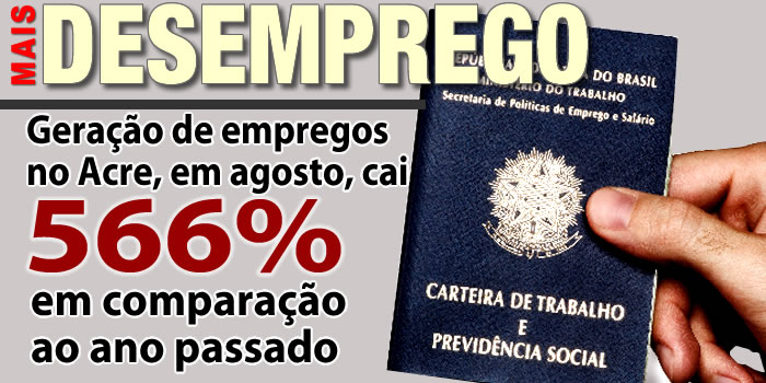De acordo com os dados do Cadastro Geral de Empregados e Desempregados – Caged –, divulgado nesta quarta-feira, 14, pelo Ministério do Trabalho, o Estado do Acre teve seu pior agosto na geração de empregos formais desde o ano de 2008 (346 postos de trabalho) gerando apenas 153 novos empregos com carteira assinada.