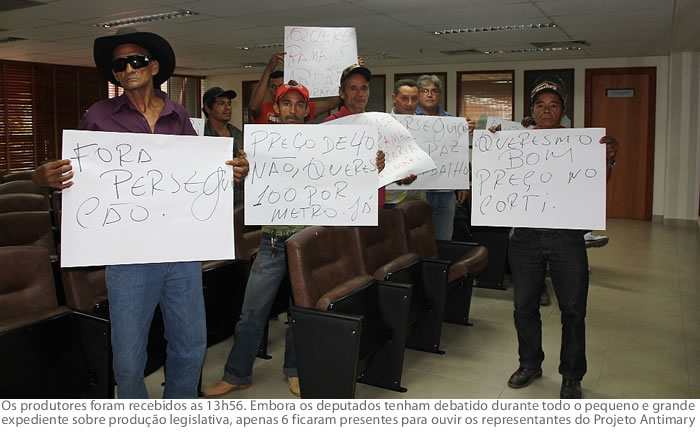 Cansados de esperar por uma fiscalização dos órgãos fiscalizadores do Estado do Acre, os produtores do projeto de assentamento do Antimary, vieram na manhã de hoje (14) até a Assembleia Legislativa do Acre, pedir apoio dos deputados estaduais para o que caracterizam como “devastação das florestas públicas”.