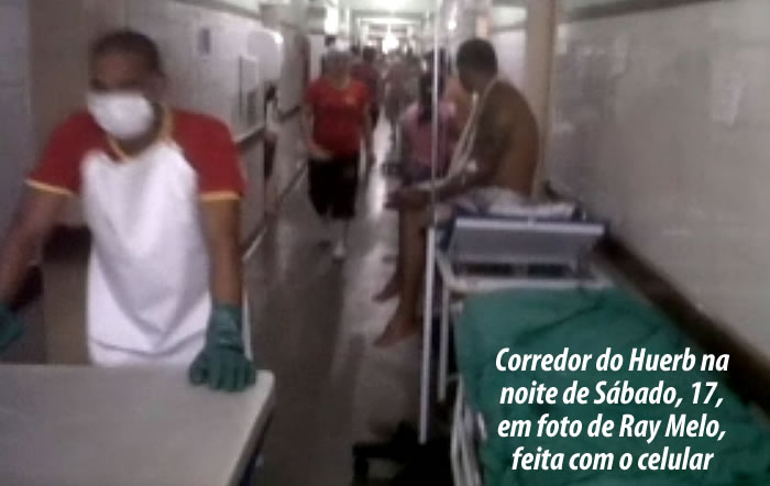 A reportagem de ac24horas teve acesso no sábado, início da noite, a um dos corredores do Huerb, onde cerca de 10 pacientes eram medicados. No local, a falta de higiene era visível. Os pacientes e acompanhantes se alimentavam sentadas nas macas, com os lençóis desgastados e sujos de sangue e restos de alimentos. Por uma questão seguranças, a reportagem vai tratar as pessoas apenas pela letras iniciais de seus nomes.
