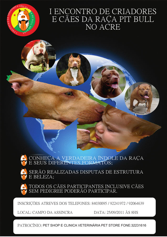 Os criadores e amantes da raça American Pit Bull Terrier realizam no próximo dia 25, o I Encontro de Criadores e Cães da raça na capital acreana. O evento acontece no campo da Associação dos Servidores do Incra (ASSINCRA), localizado no bairro Aviário.