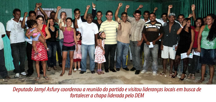 Por ser a primeira reunião que fez com seus correligionários do município de Manoel Urbano, o deputado Jamyl Asfury fez uma breve prestação de contas de seu mandato e em seguida falou dos projetos do Democratas para o Estado, comunicando que o partido está lançando candidatos a prefeito, vice prefeito e a vereadores em vários municípios, sempre buscando a união dos partidos de oposição. “Aqui em Manoel Urbano nós realmente temos o melhor nome e estamos colocando nossa pré candidatura a público. Mas precisamos caminhar juntos. Se for necessário, até realizar pesquisa para ver qual o nome tem melhor aceitação popular e menos rejeição para assim decidir o candidato das oposições. O povo quer ser governado por nós e temos que buscar sempre o melhor para corresponder com suas expectativas” disse Jamyl Asfury.