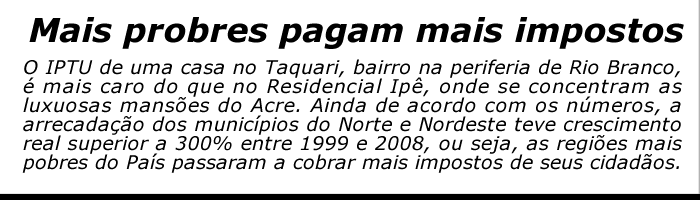 Conclusão: o IPTU de uma casa no Taquari, bairro na periferia de Rio Branco, é mais caro do que no Residencial Ipê, onde se concentram as luxuosas mansões do Acre.