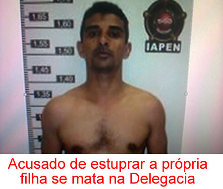 O presidiário foragido, Jair Figueiredo Castelo, 41 anos, se matou na manhã deste domingo, por volta de 11h da manhã, dentro de uma das celas da Delegacia da Mulher (DEAM), depois de ser preso acusado de estuprar a própria filha. O acusado foi encontrado enforcado com o cordão da sunga que vestia.