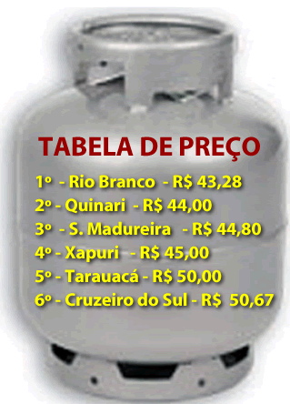 Se Rio Branco deixa de ter os menores preços do Estado na gasolina e álcool combustível, perdendo para Senador Guiormad [Quinari] e Sena Madureira, respectivamente, ganha ao menos com a média no preço do gás de cozinha (GLP) na botija de 13 quilos. A capital registra o menor valor cobrando em todo o Estado, R$ 43,28.
