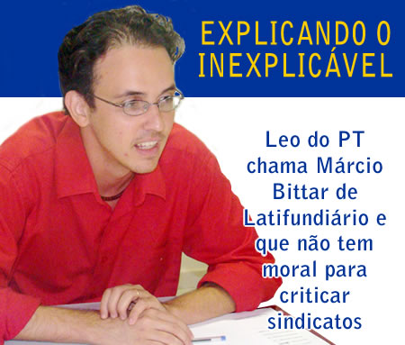 O presidente do Partido dos Trabalhadores no Acre, Leonardo Brito, usou na manhã desta sexta-feira (21), a rede social do twitter para criticar o deputado Federal Marcio Bittar (PSDB), quando se posicionou contra a atitude de sindicalistas que saíram em defesa do governo, em relação as denúncias de manejo florestal irregular no estado.