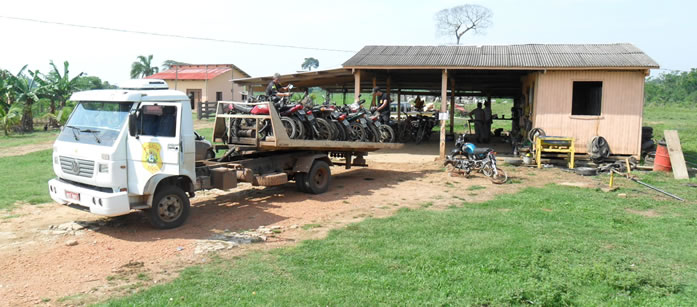 Em um galpão localizado no km 50 da BR-364 (sentido Sena Madureira), os investigadores da delegacia geral do município apreenderam 17 motos, duas com registro de roubo, e, várias com o chassis raspado, além de pedaços, de veículos de diferentes cilindradas.