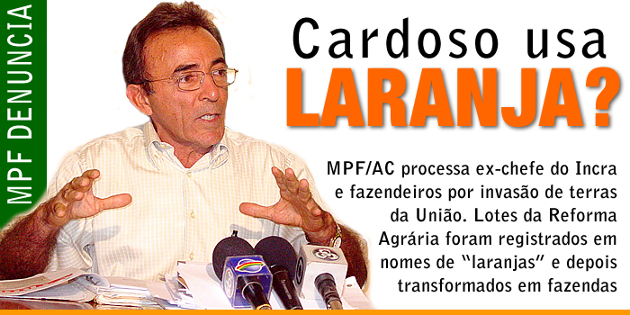 O Ministério Público Federal no Acre (MPF/AC) entrou com ações na Justiça Federal para reparar crimes de invasão de terras da União cometido pelos pecuaristas Antônio Lauro da Silva, Valtemir Fernandes de Almeida, Raimundo Pinheiro de Queiroz e José Teles Machado com a conivência de Carlos Augusto Lima Paz, conhecido como “Cardoso” ex-superintendente do Instituto Brasileiro de Colonização e Reforma Agrária no Acre (Incra).