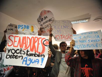Estudantes protestam contra a aprovação do texto do novo Código Florestal nas comissões de Agricultura e Ciência e Tecnologia do Senado