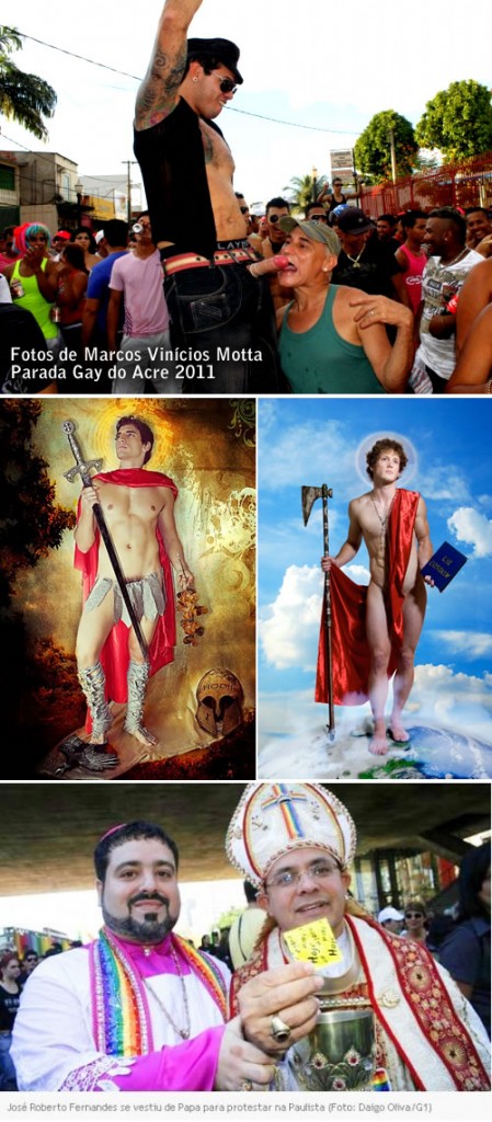 Questionando o fundamentalismo da bancada evangélica, o comunista declarou que “se isso tivesse acontecido no Acre, o palácio Rio Branco teria caído”, destacou Moisés Diniz mostrando fotos de homossexuais em vestimentas de padre e até do papa. [ Clique sobre a foto para ampliá-la]