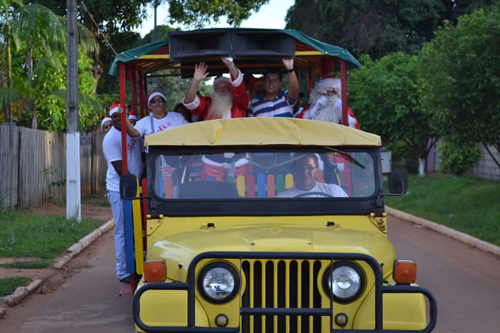 Após percorrer as principais ruas e avenidas de Cruzeiro do Sul em carro aberto acompanhado por carros e motos, a comitiva foi recebida com festa pelos pequeninos na casa do Papai Noel.