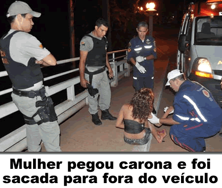 Ainda de acordo informações da vitima, ela pegou uma carona de um grupo de jovens, mais depois de entrar no veiculo ela não se recorda mais de nada, depois de alguns minutos foi lançada fora do carro ainda em movimento. Com hematomas pelo rosto, não se sabe se ela foi espancada antes de ser sacada violentamente ao chão. A vitima foi socorrida por uma viatura da Policia Militar que passava no local.