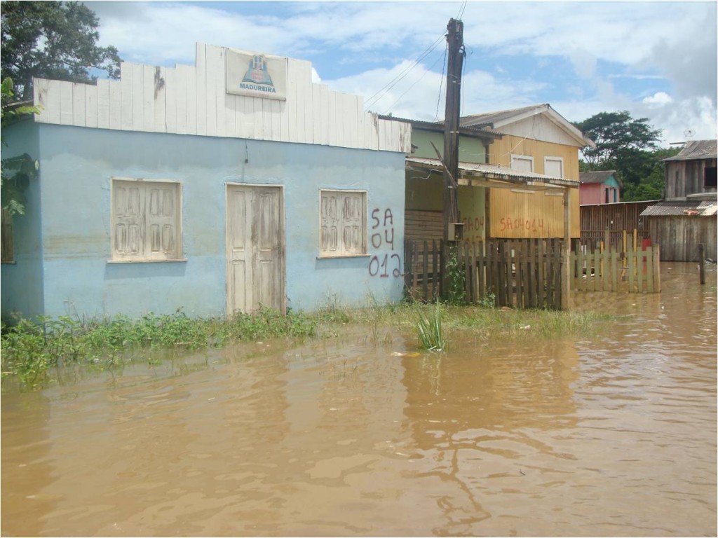 Com 13,73 metros o Rio Acre invadiu o estacionamento do governo em frente ao Mercado dos Colonos e parte Rua Barbosa Lima, no bairro da Base.