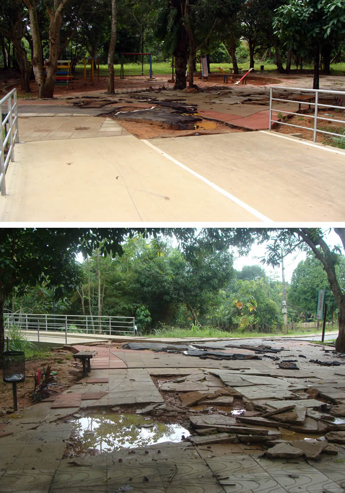 Vargas. Ciclovia, parque infantil e pista de Cooper foram afetados. O asfalto e as lajotas foram arrancados pela correnteza. Até o momento a Secretaria de Obras não interviu no local.