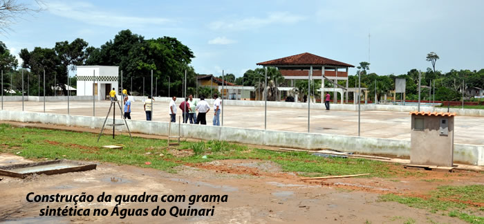 Já a quadra de esporte em gramado sintético é motivo de comemoração antecipada pela gestão, pois além de ser o primeiro município do interior do Acre a construir uma quadra com grama sintética, o investimento está sendo feito dentro da área de terra do antigo Águas de Campos do Quinari. “Como aquela área estava abandonada havia mais de 10 anos, servindo de criadouro de mosquito da dengue e esconderijo de bandidos e usuários de drogas, o município desapropriou a área, fez um grande mutirão de limpeza com a comunidade na semana do meio ambiente e iniciamos o processo de revitalização e recuperação, e o primeiro investimento nesta área é a construção desta quadra. Mas não iremos parar por aí não, haverá muito mais investimentos pela frente e transformaremos o Águas do Quinari novamente num dos principais pontos turísticos do nosso Estado” afirmou o Prefeito James.