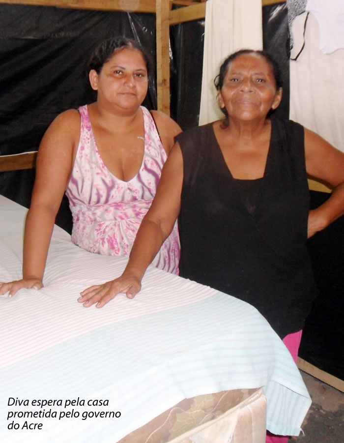Do endereço provisório Dona Diva foi expulsa pelas águas do rio Acre no último domingo. O apartamento alagou e ela e a família foram levados para o abrigo público.