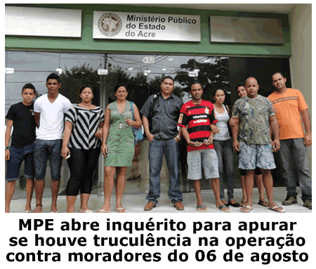 Os representantes da comunidade foram recebidos pelo Promotor de Justiça Dr. Dayan Moreira Albuquerque, do Controle Externo da Atividade Policial e Fiscalização de Presídios no Acre. Segundo a assessoria do MPE, depois de ouvir as vitimas, os oficiais e militares que participaram da operação serão interrogados.