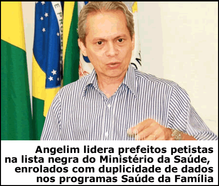 O prefeito Raimundo Angelim, do PT do Acre, lidera a lista de quatro cidades que tiveram os repasses de incentivos financeiros a equipes dos programas Saúde da Família, Saúde Bucal e de Agentes Comunitários, suspensos. A transferência, referente ao mês de janeiro deste ano, foi suspensa devido à duplicidade nos dados dos profissionais que atuam nesses municípios que constam no Sistema de Cadastro Nacional de Estabelecimentos de Saúde. A lista dos municípios atingidos pela medida foi publicada na edição de hoje (28) do Diário Oficial da União.