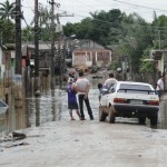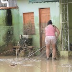 Reclamação semelhante tem o senhor Carlos Roberto de Araújo. Ele conta que o nível das águas chegou a 1m80 dentro de sua residência. Hoje pela manhã, ele colocava para fora de casa, parte dos objetos e do patrimônio perdido. Roberto chorou ao ver máquina de lavar e outros pertences, todos esculhambados com a enchente.
