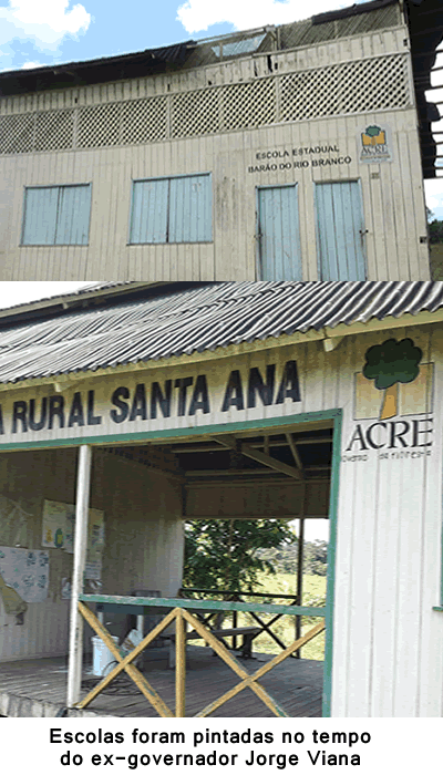 Alguns prédios encontrados pela Caravana do Iaco, a tinta ainda é do tempo do ex-governador Jorge Viana. A logomarca ainda registra o projeto de Florestania que foi abandonado pelo atual governador Tião Viana.