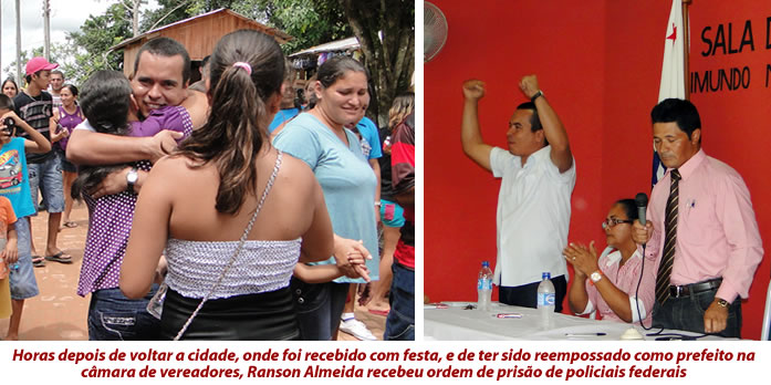 Durou menos de 24 horas a permanência do prefeito Randson Almeida na sua volta à prefeitura de Marechal Thaumaturgo. Radson Almeida foi surpreendido as cinco horas da manhã deste domingo [11], com uma ordem de prisão cumprida por agentes da Policia Federal. Na manhã de Sábado [10], ele havia sido recepcionado com festa no município, onde, por decisão da justiça do Acre, voltou a exercer o cargo de prefeito. Ele havia sido reempossado em sessão extraordinária realizada pela Câmara de Vereadores.