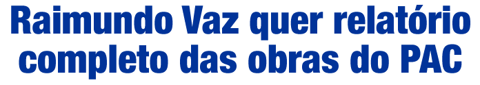 Preocupado com o ritmo das obras executadas através do PAC I e II, algumas delas paralisadas há anos, o vereador Raimundo Vaz [PRP] solicitou através de requerimento, do prefeito Raimundo Angelim, o relatório completo sobre as obras do PAC I e II no município. Ele garante que não é fogo amigo.