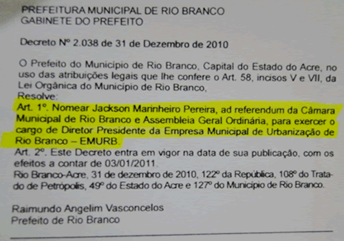 Os atos do atual secretário, Jakson Marinheiro, também podem ser anulados. Além da representação, Anute pediu uma auditoria nas contas da Emurb.
