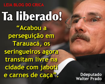 O deputado Walter Prado (PDT) foi ontem alegre à tribuna da Aleac: “acabou a perseguição em Tarauacá, os seringueiros agora transitam livre na cidade com jaboti e carnes de caça”.