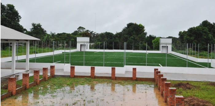QUADRA COM GRAMADO SINTÉTICO – É na área do esporte que está sendo construída outra obra que está cercada de grande expectativa. Tudo por conta de que a primeira quadra com grama sintética construída por uma prefeitura do interior do estado do Acre está localizada na área onde antigamente funcionou o Club Águas do Quinari.