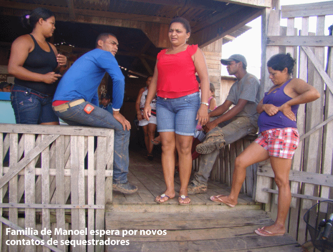 Segundo populares que presenciaram a cena, um carro de pequeno porte, com pelo menos 3 a 4 ocupantes o renderam e o levaram. Depois de algum tempo supostos os sequestradores mantiveram contato com a família da vítima exigindo da esposa dele, conhecida como “Alcilene” determinada quantia em dinheiro [montante não informado], e caso houvesse a negativa do pagamento iriam desovar o corpo de Manoel em um terreno baldio qualquer.