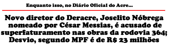 O novo homem forte das estradas do Acre também é acusado pela Ministério Público Federal diretamente do superfaturamento de obras e pelo desvio de verbas públicas no valor de quase R$ 23 milhões, relativos a trechos das obras de pavimentação e restauração na rodovia BR-364.
