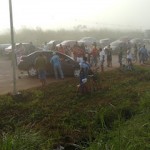 Um grave acidente aconteceu na manhã deste sábado, 2,  na Via Verde envolvendo três veículos. De acordo com informações da Policia Rodoviária Federal, o condudtor do veiculo Tiida Nissan, Paulo Almeida, de 18 anos, que está em estado grave no Pronto Socorro de Rio Branco, vinha descendo a ladeira quando em certo momento invadiu a pista contraria e colidiu de frente com um Caminhão Caçamba, que foi parar num barranco, ocasionado colisão com outro carro Polo.