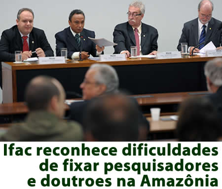 O reitor do Instituto Federal do Acre – IFAC, Prof. Marcelo Minghelli, participou do seminário “Educação, Ciência e Tecnologia na Amazônia”, realizado no dia 28 de junho de 2012, no Plenário 13 da Câmara dos Deputados. Durante sua participação, o reitor citou dados para ilustrar a dificuldade de fixar pesquisadores e doutores na Amazônia.