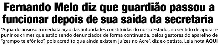 7. Aguardo ansioso a imediata ação das autoridades constituídas do nosso Estado , no sentido de apurar e punir os crimes que estão sendo denunciados de forma continuada, pelos gestores do aparelho de “grampo telefônico”, pois acredito que ainda existem juízes no Acre;