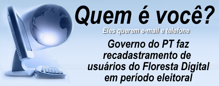 Em pleno período eleitoral, setembro e outubro próximos, os usuários do programa de acesso à internet disponibilizada pelo Governo do Acre, do PT, serão convidados a realizarem o recadastramento do programa Floresta Digital, disponibilizado dados pessoais, mas, principalmente, fornecendo e-mail, endereço e telefone.
