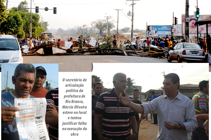 O secretário de articulação política da prefeitura de Rio Branco, Márcio Oliveira esteve no local e informou que o atraso das obras seria pela falta de tubos de concreto para fazer a parte de drenagem das obras. Oliveira se comprometeu em iniciar a pavimentação nos bairros Adalberto Sena e Placas, no início do mês de outubro.