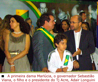 O governador Sebastião Viana (PT) ao lado de sua esposa Marlúcia Cândido, do prefeito Raimundo Angelim e do Presidente do Tribunal de Justiça, assistiu tudo do espaço reservado às autoridades. O governador de Pando (Bolívia), Luiz Adolfo Flores, convidado de Sebastião, também compareceu ao evento.