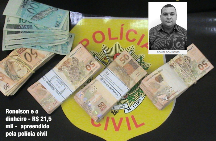 No entanto, a prisão foi feita por Policiais civis da Delegacia Itinerante, sob o comando do delegado Roberth Alencar. Ronelson é acusado de crime de peculato. Em poder do político os policiais apreenderam R$ 21,5 mil, em cédulas de 100 e 50 Reais e não quase R$ 50 mil como anunciamos.