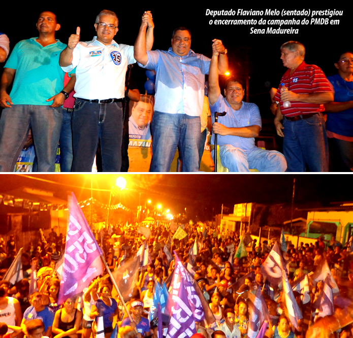 No penúltimo dia permitido pela justiça eleitoral para a realização de evento político antes das eleições do próximo domingo, a coligação “Sena quer mudar” que tem como candidato a prefeito, Mazinho Serafim (PMDB) e como candidato a vice-prefeito, Wanderlei Zaire (PSD) promoveu passeata, carreata e comício na quarta-feira (3) em Sena Madureira.