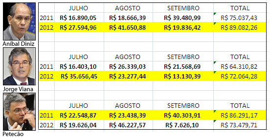 Os senadores do Partido dos Trabalhadores (PT) pelo Acre, Aníbal Diniz e Jorge Viana, gastaram mais com a verba indenizatória, dinheiro do contribuinte utilizado para financiar as atividades dos parlamentares, durante os meses de julho, agosto e setembro desse ano, período que coincide com a campanha oficial das Eleições 2012.