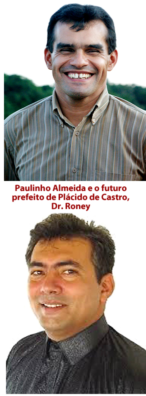 “Pense no maior sentimento de felicidade de um homem… É assim que eu estou”! As palavras do atual prefeito Paulinho Almeida (PT), foram ditas para o mais novo prefeito de Plácido de Castro, eleito neste domingo, 07 de outubro, com 57,09% dos votos do eleitorado da cidade, Dr. Roney.