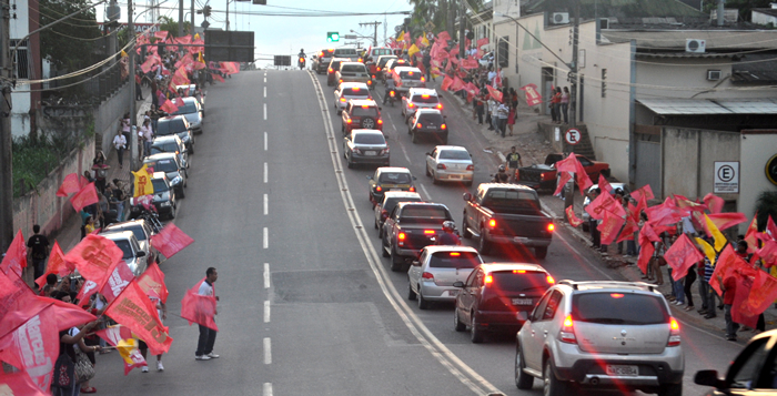 O petista caminhou de uma esquina a outra, nos dois lados da avenida entre os militantes, ao lado de seu vice Márcio Batista.
