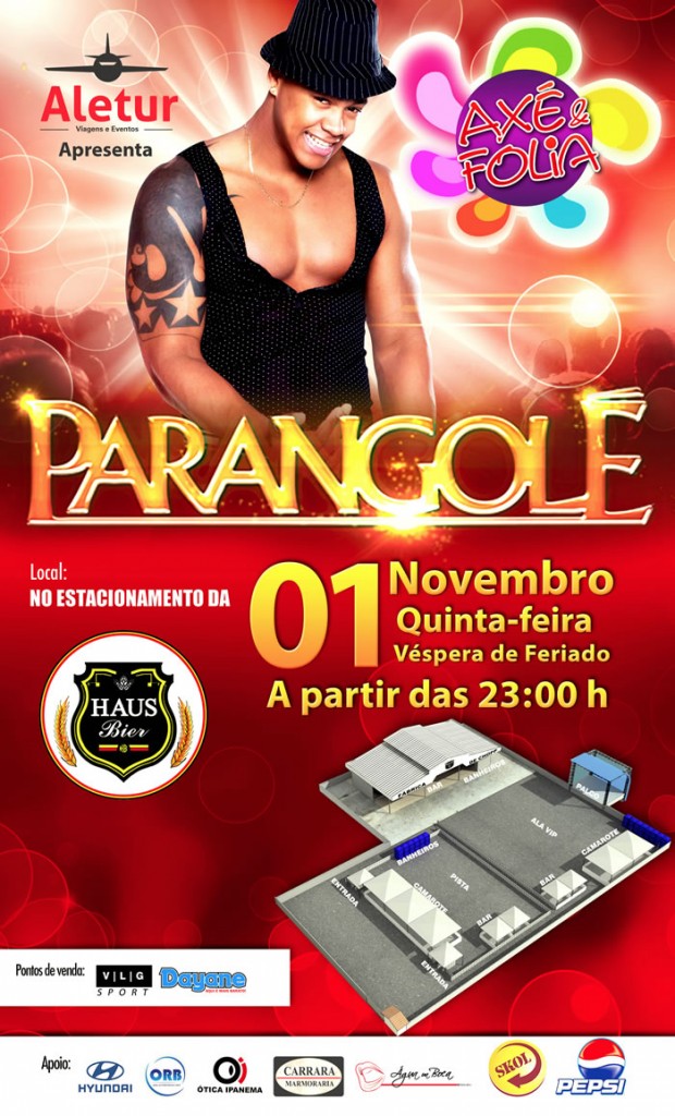 Está tudo pronto para o grande show do grande sucesso da musica baiana na atualidade, Parangolé, que será realizado no estacionamento da Haus Bier. A organização do “Axé e Folia”, lembra que os ingressos continuam sendo vendidos na VLG Sport e no Supermercado Dayane.