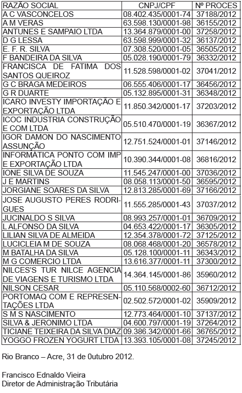De acordo com a publicação oficial as empresas não foram encontradas nos endereços informados a Fazenda do estado.