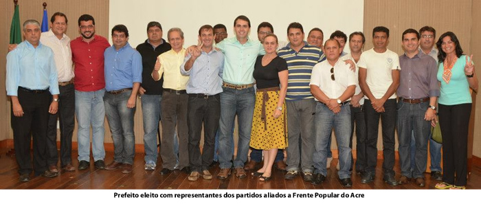 O prefeito eleito de Rio Branco Marcus Alexandre (PT) está realizando uma série de reuniões com os partidos da Frente Popular para a construção coletiva da nova administração que tem início a partir do dia 1o de janeiro. Todos os partidos que contribuíram desde a construção do plano de governo até a vitória em segundo turno em 28 de outubro estão sendo ouvidos nessa fase de transição administrativa, oportunidade em que todos contribuem para a formação da nova equipe e para o planejamento dos primeiros meses de gestão.