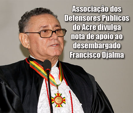A Associação dos Defensores Públicos do Estado do Acre – ADPACRE, entidade representativa dos profissionais que exercem a defesa dos juridicamente carentes, mister que tem respaldo no art. 5º, inciso LXXIV, c/c o art. 134 da Constituição Brasileira, pelo presente instrumento, presta solidariedade ao eminente Desembargador Francisco Djalma da Silva, com extensão ao Poder Judiciário Acreana, o que faz nos seguintes teremos: