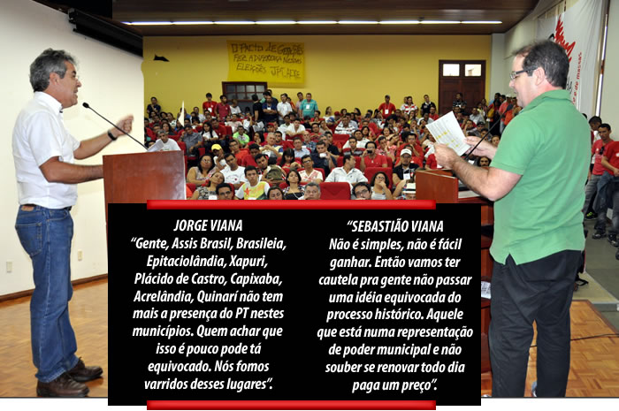 O PT tirou o sábado, 15, para lavar “roupa suja”. Durante a plenária do partido, com a presença de suas principais lideranças, o governador Sebastião Viana, os senadores Jorge Viana e Aníbal Diniz, os petistas avaliaram as eleições 2012, e concluíram que apesar da vitória na capital, o partido saiu derrotado, principalmente no Alto Acre, onde a sigla perdeu todas as prefeituras e viu sua hegemonia política em cidades históricas e simbólicas como Xapuri e Brasileia cair por terra.