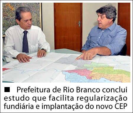A Prefeitura da capital anunciou nesta segunda-feira, 17, a conclusão do levantamento de toponímias da cidade de Rio Branco. Foram identificados 3.688 ruas e 88 becos. De acordo com José Otávio Parreira, não ficou, em toda a cidade, nenhuma rua com nome de pessoa viva, número, letra ou denominação repetida. A Secretaria Municipal de Gestão e Desenvolvimento Urbano (SMGDU), produziu mapas que indicam que a regularização fundiária avançou de 7% na administração de Raimundo Angelim, que se encerra este ano. A taxa de imóveis irregulares caiu de 70% para 63% entre 2005 e 2012, e a infraestrutura chegou à média de 40%.