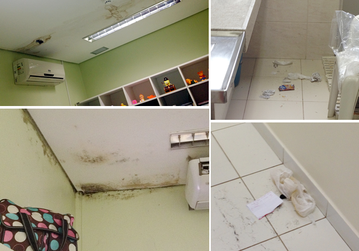 Na sala de reanimação, existe uma goteira em cima do local onde é colocada a criança. Vários pontos de infiltração são perceptíveis no teto das salas da maternidade, que foi reformada na administração do ex-governador Binho Marques (PT) e entregue à população, como uma unidade nos padrões exigidos pelo Ministério da Saúde.