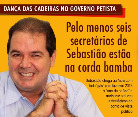 Outros cinco secretários do governo de Sebastião estariam na “corda bamba”. Antes de entrar de férias, Sebastião Viana teria dado prazo de três meses para os secretários Reny Graebner (segurança), Suely Melo (saúde), Mauro de Deus (esportes), Aurélio Cruz (Habitação) e Ilmara Cordeiro (turismo) melhorarem seu desempenho e alcançar metas não alcançadas em suas pastas. Esses setores seriam os campões no número de reclamações. O que teria influenciado, negativamente, nas eleições municipais deste ano, principalmente no interior, onde a FPA deixou de governar boa parte das prefeituras.