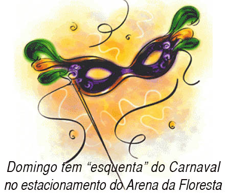 O primeiro “esquenta” do Carnaval 2013 acontece neste domingo, 27, no estacionamento do estádio Arena da Floresta, a partir das 18 horas, com entrada franca. Sandra Melo e a banda “Os Primos” serão os responsáveis pela diversão e alegria dos foliões.